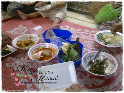 Sampai2 sana ngam2 perut pun dah berbunyi2. So siap2 la hidangkan lauk yang dibeli tadi. Mama memang bawak pinggan mangkuk dari rumah. Siap singgah beli ais di pekan jap sebelum sampai tadi.